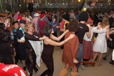 31.01.2009Wenn die Urzeitfrau mit dem Sträfling Salsa tanztInsgesamt über 500 Faschingsfreunde feierten am Samstag in der VereinsturnhalleZeven (zi). Am Samstagabend war es wieder soweit. Etwa 250 bunt kostümierte Personen zog es zum traditionellen Sockenball in die Vereinsturnhalle des TuS Zeven, wo das engagierte Helferteam des Sportvereins bereits in den Tagen zuvor für das passende Ambiente für eine gelungene Feier gesorgt hatte. Am Samstagnachmittag gehörte die aufwändig geschmückte Vereinsturnhalle allerdings noch den Kindern und deren Eltern, die sich für zwei Stunden zum ebenfalls seit Jahren sehr beliebten Kinder-Sockenball mit Musik, Animationsprogramm und Kaffee und Kuchen trafen. Auch unter diesen rund 270 Gästen waren bereits viele fantasievolle Verkleidungen zu sehen und die Stimmung unter den kleinen Besuchern war bis zum Ende - bei dem es traditionsgemäß immer Luftballons von der Decke regnet - gut. Am Abend gehörte die Tanzfläche dann den jugendlichen und erwachsenen Vereinsmitgliedern und ihren Freunden. Aus dem , durch einen speziellen Bodenbelag geschützten, Hallenboden wurde eine sehr gut frequentierte Tanzfläche und auch an den Theken herrschte reges Treiben. Allerdings fiel auf, das ein Großteil der Gäste erst später kam als in den zurückliegenden Jahren. Wir haben uns erst noch zu einem gemeinsamen Essen getroffen, bevor es dann mit der Mannschaft hierher ging war von einer jungen Dame in einem sexy Kostüm zu erfahren. Aber für alle in unserer Gruppe war klar, dass der Sockenball unser Ziel sein wird. Dafür sind die Stimmung und die Musik einfach zu gut!
