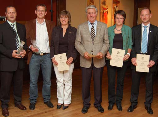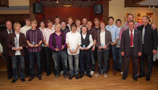26.09.2009Das ist hier ja eine tolle Party!Gelungener Sportlerball des TuS Zeven in neuer UmgebungZeven-Oldendorf (zi). Das ist hier ja eine tolle Party! war am Samstagabend der Kommentar einer festlich gekleideten Jugendlichen, die auf dem traditionellen Sportlerball des TuS Zeven mitfeierte. Und die Feier, die erstmals im Gasthaus Adebar in Oldendorf stattfand, war beides: Ein Ball und zugleich eine rauschende Party für die rund 220 Anwesenden, unter denen in diesem Jahr sehr viele Jugendliche waren. (Rund 220 Mitglieder der „TuS-Familie“ feierten in Olodendorf gemeinsam eine tolle Party) Schon in seiner Begrüßung stellte Axel Körner - der erste Vorsitzende des Turn- und Sportvereins Zeven - fest, dass in diesem Jahr einige Veränderungen im Ablauf der Traditionsveranstaltung nötig geworden waren. Neben dem Wechsel an einen Ort, der für seine guten Feiermöglichkeiten bekannt ist, gab es beispielsweise diesmal Musik vom DJ und keine Tombola oder Tischreservierungen. Aber dafür wieder jede Menge Spaß und gute Stimmung bis in den frühen Morgen. Bereits an der Abendkasse bildete sich kurzzeitig eine Warteschlange und der starke Andrang führte dazu, dass einige Stühle im Saal hinzugestellt werden mussten. Doch die Gäste nahmen es mit Humor, lernten sich doch so an den neuen Tischgemeinschaften auch bisher fremde Personen aus der großen TuS-Familie besser kennen. Was es auch in diesem Jahr wie in jedem Jahr gab, waren die traditionellen Ehrungen für langjährige Mitgliedschaften, besonderes Engagement und natürlich herausragende sportliche Leistungen. So sind Heike, Berthold und Kim Door, Ilona Gieschen, Ilse Krüger, Bernd Rakowitz, Hartmut-Hans Schmidt, Dr. Walter Borchers, Julika Borchers, Betina Blut, Christa Eckhof, Christa Meyer, Helmut Pieper, Anette Sachse, Heike Schaschek und Günter Schnackenberg seit 25 Jahren Mitglieder im Verein. Und Fritz Lange, Karin Mulder, Burkhard Reimann und Wilfried Wischhusen sogar schon seit 50 Jahren, weshalb die an diesem Abend anwesenden langjährigen Mitglieder Ehrennadeln und eine Urkunde erhielten. Außerdem gesellten sich zu ihnen noch die beiden verdienten TuS-Mitglieder Detlef Bredehöft (Abteilungen Leichtathletik und Rasenkraftsport) und Eike Rolfs (Handballer und Rasenkraftsportler), die nicht nur sportlich erfolgreich, sondern in ihrer Freizeit auch als Helfer und Funktionäre für ihre Abteilungen, bzw. den Hauptverein aktiv sind. (Eike Rolfs, Detlef Bredehöft und weitere ausgezeichnete TuS-Mitglieder v. li.) Tosender Jubel brandete besonders bei der Bekanntgabe der Mannschaft und des Sportlers des Jahres auf. Die männliche Jugend A der Handballabteilung mit Renè Viets, Marvin Kunde, Roshan Rolfs, Sebastian Bleck, Niels Bonacker, Felix Naerger, Hans zu Jeddeloh, Patrick Fehlandt, Till Putzas, Tobias Holsten, Daniel Erichsen, Kevin Küssner, Marcel Backhoff, Marc Usskurat, Stefan Fahjen und ihren Trainern Michael Putzas und Jörg Lindenbaum wurde hierbei von Axel Körner und seinem Stellvertreter Jürgen Fahjen für ihren Aufstieg ausgezeichnet. Sportler des Jahres wurde der jugendliche Leichtathlet und Rasenkraftsportler Helge Zabel, der beispielsweise alleine in der Leichtathletik in der zurückliegenden Saison erste Plätze und Rekorde am laufenden Band erreichte. Insgesamt war der diesjährige Sportlerball eine tolle Party, auf der die Sportlerinnen und Sportler des TuS Zeven generationenübergreifend feierten. Helge Zabel (vorne links) und die männliche A Jugend der Handballabteilung wurden von Axel Körner (2. von rechts) und seinem Stellvertreter Jürgen Fahjen (links) für ihre sportlichen Erfolge ausgezeichnet Fotos: Zschiesche |