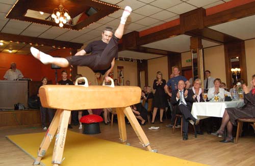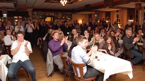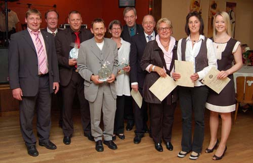 Nach der Begrüßung durch Axel Körner, dem ersten Vorsitzenden des Vereins, folgten kurz nach Beginn des Ballabends die traditionellen Ehrungen langjähriger Mitglieder, verdienter Mitglieder, der Mannschaft des Jahres und diesmal von gleich zwei Sportlerinnen des Jahres. Denn mit Mareike Schuster und Sarina Holsten waren es zwei junge Kader-Athletinnen des Niedersächsischen Leichtathletikverbandes, die für ihre sportlichen Leistungen geehrt wurden. Seit Jahren sind sie immer in den Landesbestenlisten vertreten, nahmen schon mehrfach erfolgreich an Deutschen Meisterschaften teil, haben vergleichbar gute Ergebnisse erzielt und sind auch bei eigenen Veranstaltungen in Zeven als fleißige Helferinnen mit im Einsatz. Deshalb fiel uns die Wahl nur einer Person so schwer und wir haben uns im Vorstand entschlossen, diesmal beide Sportlerinnen zu ehren betonte Axel Körner in seiner Laudatio. Mannschaft des Jahres wurden die 1. Damen der Volleyball-Abteilung mit Alicia van Beek, Angela Wedekind, Friederike Bauer, Mieke Cordes, Conny Klees, Jessica von Bargen, Marta Rosenius, Sarah Tippel, Irina Maier, Lena Wagner, Antje Kücks und Rebecca Pape mit ihrem Trainer Thorsten Möckel, die Meister der Bezirksliga geworden waren und denen der Aufstieg in die Landesliga gelungen ist. Und das fast mit weißer Weste wie Axel Körner erwähnte. Denn erst im letzten Spiel erhielten sie ihre einzige Niederlage. Sarina Holsten, Mareike Schuster und die Mannschaft der 1. Damen der Volleyball-Abteilung mit ihrem Trainer Thorsten Möckel (von links) wurden für ihre sportlichen Leistungen geehrt. Für ihren ehrenamtlichen Einsatz für den Verein wurden als Verdiente Mitglieder am Sonnabend Martina und Aki Schlösser (Tischtennis-Abteilung) und Klaus Krieglsteiner (Leichtathletik und Rasenkraftsport) von Axel Körner und seinem Stellvertreter Jürgen Fahjen geehrt. Silberne Ehrennadeln für 25 Jahre Mitgliedschaft erhielten in Oldendorf Karin Bonacker, Steffi Fahjen, Kerstin Jaap, Hans-Joachim Jaap und Hartmut Wertheim. Weitere silberne Ehrennadel gehen in nächster Zeit an Inge Bohlmann, Jürgen Behn, Anke Brunkhorst, Markus Grossmann, Gerda Hensel, Katrin Jaap, Werner Löhden, Cordula Meyer, Anni Raffel, Ute Paulsen, Peter Kossow, Elke Schlüter, Holger Schlüter und Wilfried Weidkämper, die leider am Sonnabend bei der Ehrung nicht persönlich dabei waren. Und auch Ingrid Bultmann, die für 50 Jahre Mitgliedschaft eine goldene Ehrennadel erhält, wird laut Axel Körner demnächst Besuch bekommen. Axel Körner, Jürgen Fahjen, Klaus Krieglsteiner, Aki Schlösser, Martina Schlösser, Hartmut Wertheim, Hans-Joachim Jaap, Kerstin Jaap, Karin Bonacker und Steffi Fahjen (von links). Ein weiterer Höhepunkt des Abends war eine Einlage der Gerätturner, die am Boden und an einigen Geräten dem völlig begeisterten Publikum eindrucksvoll zeigten, wie viel Kraft, Akrobatik und Körperbeherrschung eingesetzt werden, um tollen Sport zu machen. Deshalb kamen die jungen Herren rund um ihren Trainer Sven Dannehl auch nicht um die lautstark geforderte Zugabe herum, für die es ebenfalls frenetischen Beifall des mehrheitlich jugendlichen Publikums gab. In diesem befanden sich übrigens auch wieder viele Mitglieder des Fördervereins für Hippopädagogik und Reitsport e.V., die nun schon seit einigen Jahren zusammen mit den Sportlerinnen und Sportlern des TuS Zeven feiern. Und das taten viele der ausgelassenen Gäste zur Musik von DJ Johnny Adebar auch in diesem Jahr bis in den frühen Morgen. Bis in den frühen Morgen wurde auch in diesem Jahr auf dem Sportlerball des TuS Zeven gefeiert. Die Gerätturner rund um Trainer Sven Dannehl, hier auf dem Pauschenpferd, zeigten eine sehenswerte Vorführung. Der Gasthof Adebar war am Sonnabend sehr gut gefüllt, was der Stimmung aber nicht schadete. Fotos: Zschiesche |