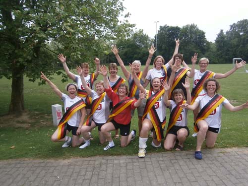 Pfingsten 2014Deutsche Seniorenmeisterschaften VolleyballSensationell – phänomenal – gigantisch – die Begeisterung der Zevener Volleyball-Seniorinnen über die Teilnahme an den Deutschen Seniorenmeisterschaften, die am Pfingstwochenende in Minden stattfanden, lässt sich kaum in Worte zusammenfassen. Zum zweiten Mal in Folge hatte sich das Team des TuS Zeven für die offiziellen Meisterschaften des Deutschen Volleyballverbandes in der Altersklasse Ü37 qualifiziert und zum zweiten Mal in Folge kehrte das Team mit einem hervorragenden 8. Platz in die Stadt am Walde zurück. Aber nicht nur die tolle Platzierung sorgte für eine hohe Zufriedenheit auf Zevener Seite, sondern auch die Welle der Begeisterung, die das Zevener Team von Beginn an durch die Meisterschaft trug. Jubelnd, singend und lachend wurde jeder gewonnen Punkt gefeiert und so wurde bereits in der Vorrunde die Basis für die späteren 8. Platz gelegt. Mit dem Sieg (2:0 / 50:42) im 2. Vorrundenspiel gegen den SC Baume (Regionsmeister Nordost) nutzte das TuS-Team (3. Region Nordwest) die sich bietende Chance und qualifizierte sich als Gruppenzweiter für die Zwischenrunde. Zuvor hatte sich der TuS schon achtbar gegen den letztjährigen Zweitplatzierten TV Bad Soden (Regionsmeister Südost) aus der Affäre gezogen, ohne jedoch die Niederlage verhindern zu können (0:2 / 32:50). In der Zwischenrunde wartete dann mit dem TV Fischbek (Regionsmeister Nord) der amtierende und neue Deutsche Meister auf den TuS und die Vorzeichen waren vor dem Spiel klar vergeben (0:2 / 40:50). Doch der Spielverlauf sollte dann zeigen, dass sich die Hamburgerinnen schwer taten, die erwartete Dominanz auf das Feld zu bringen. Vor allem im zweiten Satz, als der Underdog aus Zeven von der gesamten Halle lautstark angefeuert wurde, zeigte das Zevener Team eine tolle Gegenwehr und hielt das Geschehen lange ausgeglichen (23:25). Wer aber glaubte, dass damit schon das stimmungsvolle Hoch erreicht war, sah sich getäuscht, denn das erste Spiel am Sonntagmorgen sollte dieses noch übertreffen. Im Spiel um die Plätze 5 – 8 gegen den Post SV Bielefeld (Regionsmeister West) schwappte die Welle der Begeisterung erneut über (1:2 / 61:65), als der Tiebreak sich zu einem wahren Krimi entwickelte. Nach zwei vergebenen Matchbällen mussten sich Zeven knapp mit 17:19 geschlagen geben. Trotz der beiden knappen Niederlagen durften sich die Zevenerinnen, die viele bekannte Gesichter aus dem Vorjahr wiedertrafen, über ein hohes Maß an positiver Resonanz aus den Reihen der konkurrierenden Mannschaften freuen. Vor allem das stimmungsvolle Auftreten auf und neben dem Feld sorgte für Bewunderung und auch die ansprechende sportliche Leistung fand positive Anerkennung. So war es dann auch zu verschmerzen, dass das Spiel um Platz 7 gegen den TSV GA Stuttgart (2. der Regionsmeisterschaft Süd) mit 0:2 (27:50) verloren wurde. In das Gesamtbild des perfekten Wochenende passte es, dass die Zevenerinnen bei der Suche nach einer Unterkunft (Anmerkung: in Minden gab es am Pfingstwochenende kein einziges Zimmer mehr) auf alte Volleyball-Kontakte zurückgreifen konnte. Ohne lange zu überlegen stellte eine ehemalige Mitspielerin den Zevenerinnen ihr Haus zur Verfügung, so dass sich die Mannschaft wie zu Hause fühlen durfte (Danke an Maike und ihre Familie). Verdienter Deutscher Meister in der Altersklasse Seniorinnen Ü37 wurde der TV Fischbek, der sich im Finale gegen die USC Braunschweig durchsetzte. Für den TuS Zeven waren in Minden: Sabine Rolfs, Marion Körner, Loni Gieschen, Christiane Schwarz, Sylvia Dammann-Kullik, Regina Cordes, Ulrike Huß, Karin Bammann, Sabine Wolf, Ulrike Fitschen, Janine Arand und Sanni Lühmann. Platzierungen Seniorinnen Ü37: