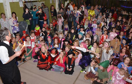 Dein Buch brennt, dein Buch brennt! warnten in der Vorführung von Clown Rob viele aufgeregte Kinder lautstark