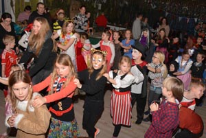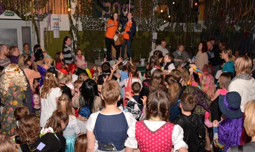 Musik wieder einsetzte. Während Rob für die Kinder weiter Ballonfiguren bastelte, herrschte bald an anderen Stellen der von TuS-Mitgliedern erneut aufwändig dekorierten Vereinsturnhalle ebenfalls wildes Gewusel. Und wenn dann auch noch mit entsprechenden Liedern oder einer Polonaise zum Mitmachen animiert wurde, dann stieg der Geräuschpegel weiter an.
