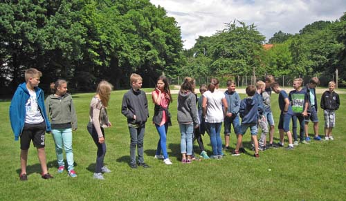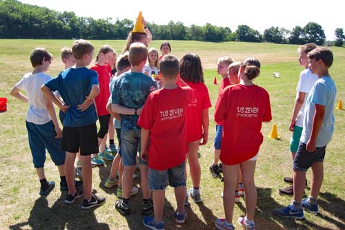 16.-18.06.2017TuS Zeven auf EntdeckertourKinder- und Jugendfreizeit in Cuxhaven erneut ein ErfolgAuf eine dreitägige Entdeckertour in Cuxhaven ging es am letzten Wochenende vor dem Beginn der Sommerferien für eine Gruppe aus den Reihen des TuS Zeven. Nach der gelungenen Premiere im vergangenen Jahr war auch diese Fahrt, bei der das gegenseitige Kennenlernen, der Spaß und die Bewegung im Mittelpunkt standen, ein voller Erfolg.Antje Franz, die Organisatorin der Tour und Jugendwartin des TuS Zeven, konnte diesmal die Anmeldungen von 18 Kindern im Alter von 10 bis 13 Jahren entgegen nehmen. Die 11 Jungen und 7 Mädchen kamen aus allen Abteilungen des Vereins. Von Jazzdance bis Fußball. Über die Hälfte der Mitreisenden war auch schon im vergangenen Jahr dabei berichtete die Zevenerin. Die Gruppe, zu der auch die erwachsenen Begleiter Antje Franz, Friederike Rike Bauer, Philine Rolfs, Finn Brunkhorst und Axel Körner gehörten, wohnten erneut in einem Gruppenhaus auf dem weitläufigen und kinderfreundlichen Gelände des Dünenhof in Cuxhaven. Das Wetter war super. Kein Regen! betonte Antje Franz und lobte: Es gab keinen Streit und keinen Ärger. Alle sind gut miteinander zurecht gekommen. Ich würde es auf jeden Fall wieder anbieten. Diesmal gab es schon vor der gemeinsamen Fahrt, die in Privatfahrzeugen erfolgte, ein Kennlernspiel auf dem Vereinsgelände in Zeven. Dabei sollten sich die jungen Mitreisenden nach ihren Namen auf einer Linie nach dem Alphabet sortieren. Außerdem gab es den Auftrag, während der Fahrt mindestens einer der anderen Mitfahrer kennenzulernen. Denn nach der Ankunft musste jeweils einer der Mitreisenden vor der kompletten Gruppe vorgestellt werden. Die Unterkunft erfolgte in 4-Bett-Zimmern und nach dem Beziehen der Betten standen die Erkundung des Geländes und ein Grillen auf dem Programm, bevor noch Gemeinschaftsspiele wie Zombie-Ball oder Zeitungsschlagen gespielt wurden. Gegen 22.30 Uhr waren die Kinder auf den Zimmern, wo ab 23 Uhr Flüster-Lautstärke herrschen sollte. Wecken war am Sonnabend um 8 Uhr, da es eine halbe Stunde später Frühstück gab. Den Vormittag verbrachten die TuS-Mitglieder in drei Gruppen mit einem Detektiv-Spiel. Dabei wurden laut Szenario acht Menschen vermisst und mit Hilfe von 18 Hinweisen und einer Karte sollte geklärt werden, wer wirklich verschwunden war. Nach dem Mittagessen ging es mit Leih-Fahrrädern an den Strand, wo beispielsweise der Vereinsvorsitzende Axel Körner zeitweilig und teilweise verbuddelt wurde. Außerdem wurde jede Menge getobt und sich bei Bewegungsspielen verausgabt. Nach einem abendlichen Grillen und Stockbrot am Lagerfeuer ging es dann noch mit sportlichen Aktivitäten weiter. Am Sonntag standen unterer anderem Gemeinschaftsspiele wie Quietsche-Entchen, eine Wasserrallye, Bewegungsspiele wie Hase und Kohlkopf oder Die gute Fee auf dem Programm, bevor das Packen der Sachen anstand. Nach dem Essen bildete das Schwimmen in einem Wellenbad den Abschluss der Aktivitäten in Cuxhaven, bevor die Heimfahrt erfolgte und sich am Abend sicherlich viele der Mitreisenden früher als sonst üblich zum Schlafen legten.