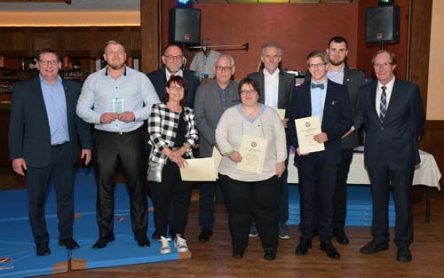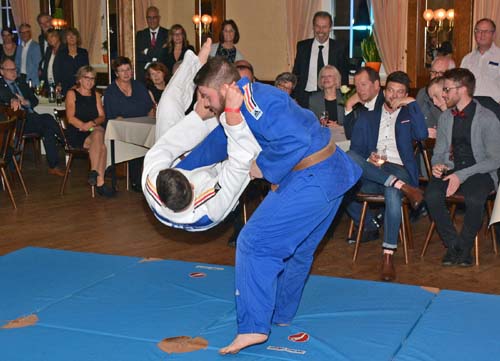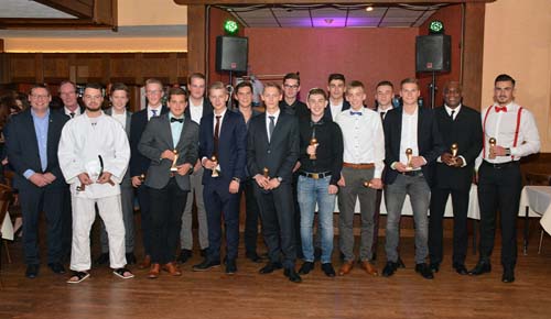 27.10.2018Abteilungen Judo und Fußball stellen die Sportler des JahresAus den Abteilungen Judo und Fußball kommen in diesem Jahr der Sportler und die Mannschaft des Jahres. Mitglieder und Freunde des Vereins feierten am 27.Oktober im bis auf den letzten Platz besetzten Saal des Gasthof Adebar in Oldendorf den Sportlerball unseres Vereins, dessen besondere Höhepunkte die Ehrungen und sehenswerte Vorführungen waren.Sportler des Jahres wurde Nick Wolf aus der Judo-Abteilung des TuS Zeven. Träger des Titels Mannschaft des Jahres ist die ehemalige U18 der Fußball-Abteilung. Neben den Spielern Noa Carbuhn, Keno Enghard, Artur Huk, Lukas Huß, Dominik Kakol, Franjo Kohl, Jonas Krüger, Ole Lemmermann, Leon Lindner, Kristen Michaelis, René Nordwig, Piotr Nowak, Claas-Christian Paulsen, Frido Petersen, Alexander Pooch und Aaron Thies gehören natürlich auch die Trainer Jimmy Fransman, Yannik Carbuhn, Niklas Fehland und Maurice Meyer zu den Geehrten. Auf dem Sportlerball wurden auch in diesem Jahr Personen für langjährige Mitgliedschaften und besonderes Engagement ausgezeichnet. Jeweils bereits seit einem halben Jahrhundert sind Henry Brunkhorst, Stephan Gerling, Rüdiger Liszio, Jürgen Samland und Ralf Viets Mitglieder im TuS Zeven. Auf jeweils 25 Jahre kommen Marianne Baden, Friederike Bauer, Sebastian Bauer, Andrea Bleck, Monika Drewes, Magret Gerken, Ralf Krause, Hannes Maxin, Theo Maxin, Rolf Meyer, Frank Reese, Steffen Richter, Regina Schiller, Arne Schlösser und Rene Viets. Neben einer Urkunde gab es dafür auf dem Sportlerball für die Anwesenden auch Ehrennadeln. Für sein besonderes Engagement wurde außerdem der Handballer Konstantin Franz als Verdientes Mitglied des Vereins ausgezeichnet. Sehenswert waren die sportlichen Einlagen des Abends. Für diese sorgten erst die neun jungen Wettkampfturnerinnen Johanna Behrens, Joleen Biendara, Mareike Bollema, Anna-Katharina Meier-Schäfer, Celine Narawitz, Annalena Tebbe, Sarah Tebbe, Wiebke Tebbe und Alison Trumpa, bevor dann ein Trio aus der Judo-Abteilung einen Einblick in die japanische Kampfsportart gab. Fotos: Zschiesche |