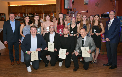 12.11.2022Aktive der Turnabteilung ausgezeichnetEhrungen und Vorführungen auf dem Sportlerball des TuS ZevenZeven-Oldendorf. Aus der Turnabteilung kommen in diesem Jahr die Sportlerin und die Mannschaft des Jahres des Turn- und Sportvereins Zeven. Mitglieder und Freunde des Vereins feierten am Sonnabend, den 12. November, im vollen Saal des Gasthof Adebar in Oldendorf den Sportlerball des TuS, bei dem auch Ehrungen und Vorführungen stattfanden.Schon kurz nach seinen Begrüßungsworten verriet Axel Körner - der erste Vorsitzende des TuS Zeven – den Anwesenden, dass in diesem Jahr die 1. Damenmannschaft Turnen des Vereins mit Johanna Behrens, Mareike Bollema, Anna-Katharina Meier-Schäfer, Alison Trumpa, Annalena, Sarah und Wiebke Tebbe und ihrem Trainer Janko Tebbe Träger des Titels Mannschaft des Jahres ist. Die Erfolgsgeschichte der Mannschaft begann 2016. In der Bezirksklasse wurden sie Meister und stiegen in die Bezirksliga auf. 2017 und 2018 wurden sie hier jeweils Zweite, um dann anschließend Meister zu werden und in die Landesliga aufzusteigen, schilderte der Vereinsvorsitzende die sportliche Entwicklung der jungen Damen, die – nach Wettkampfausfällen durch die Corona-Pandemie - nun vor drei Wochen im ersten regulären Wettkampf der Landesliga mit einem hauchdünnen Rückstand auf den zweiten Platz kamen.