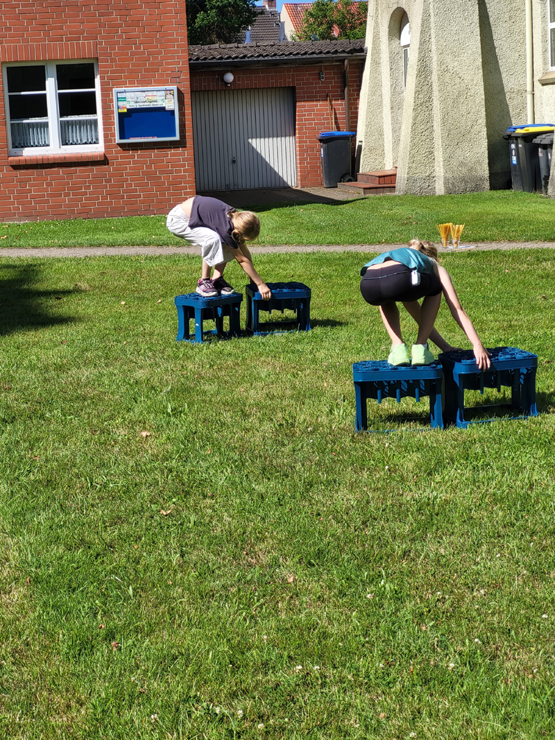 29.07.2024Aktion FerienprogrammAm 29.07.2024 nahm der TuS Zeven am Ferienprogramm der Stadt Zeven teil, unter dem Motto Spiel ohne Grenzen.Mit 26 Kindern im Alter von 6-10 Jahren wurden gemeinsam Staffeln und Tickspiele gespielt. In 2er Teams musste sich auf Kisten fortbewegt, ein Blindenparcours bewältigt und Spaghetti in Makkaroni eingefädelt werden. Weitere Spiele waren Wäsche rückwärts aufhängen, zusammengebunden Wasser transportieren und Reifen in Ziele versenken. Geleitet wurde die Aktion von unserer Jugendwartin Antje Franz und ihrem Mann Konstantin.